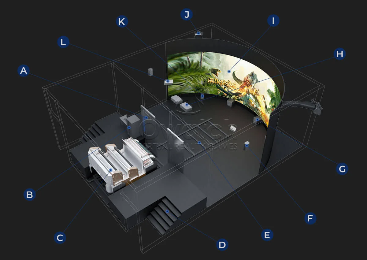 קולנוע 3D ללא משקפיים בסגנון Jurassic World — כולל מסך קמור ענק 160° ו-6DOF דינמיים.✔ מושלם לקניונים, מוזיאונים, פארקי VR ואטרקציות תיירות.